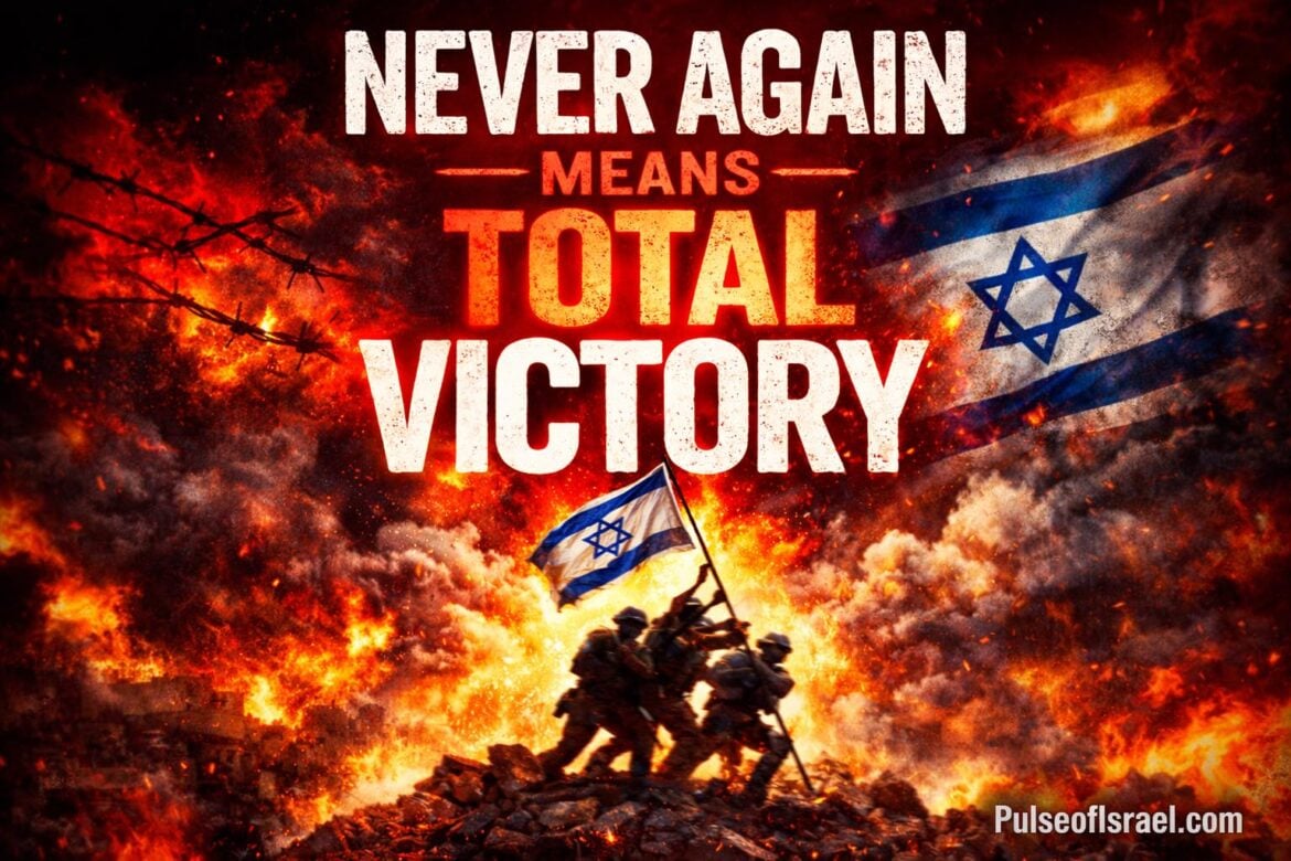 “Never Again” can only be achieved through total victory in this war, the kind of victory that speaks in the only language jihadi Muslims understand: decisive defeat and loss of land.
