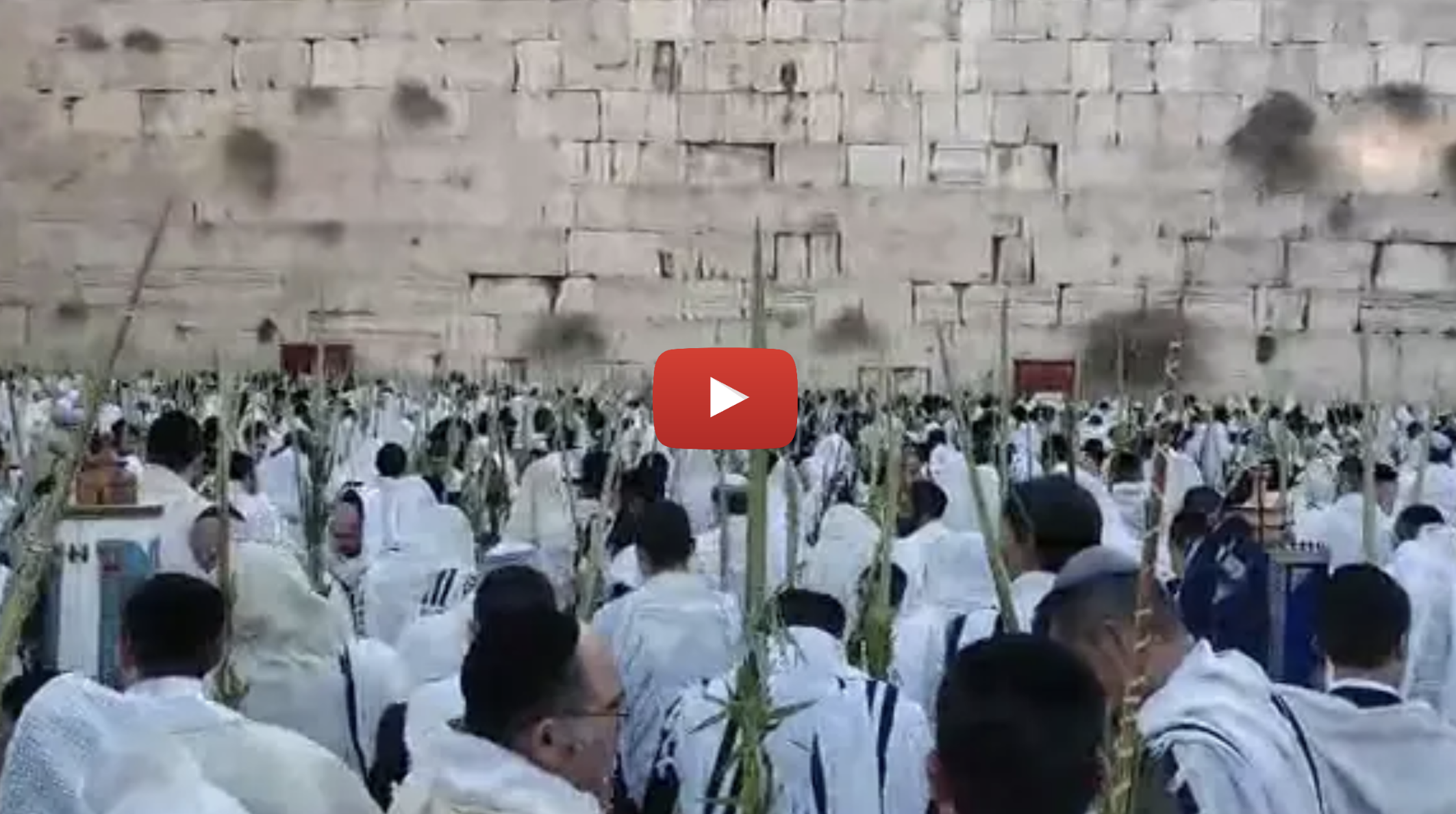 Tens of Thousands Wave the 4 Species at the Western Wall of the Temple Mount