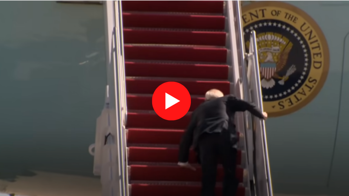 There is something surreal in President Biden falling three times as he attempts to walk up the stairs into Air Force One.