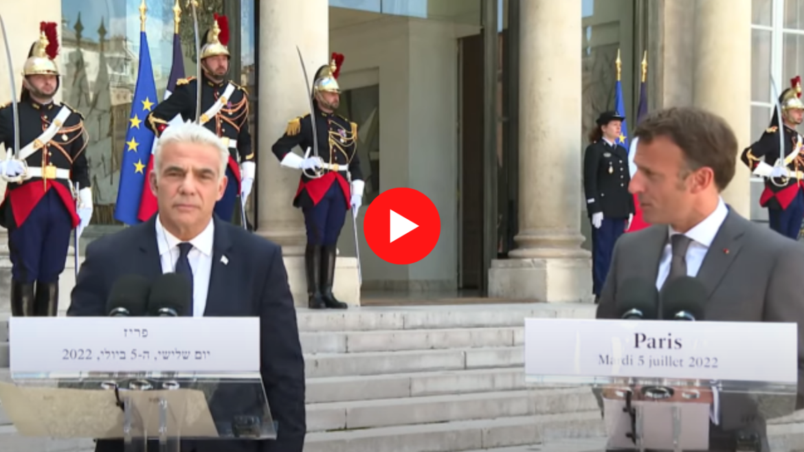 Caretaker Prime Minister Yair Lapid flew to Paris to meet with French President Macron – his first overseas trip as Israeli Prime Minister.