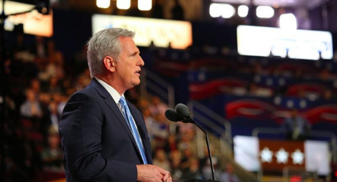 Then-House Majority Leader Kevin McCarthy (R.-Calif.) speaks on day two of the 2016 RNC, July 19, 2016. Credit: Voice of America via Wikimedia Commons.
