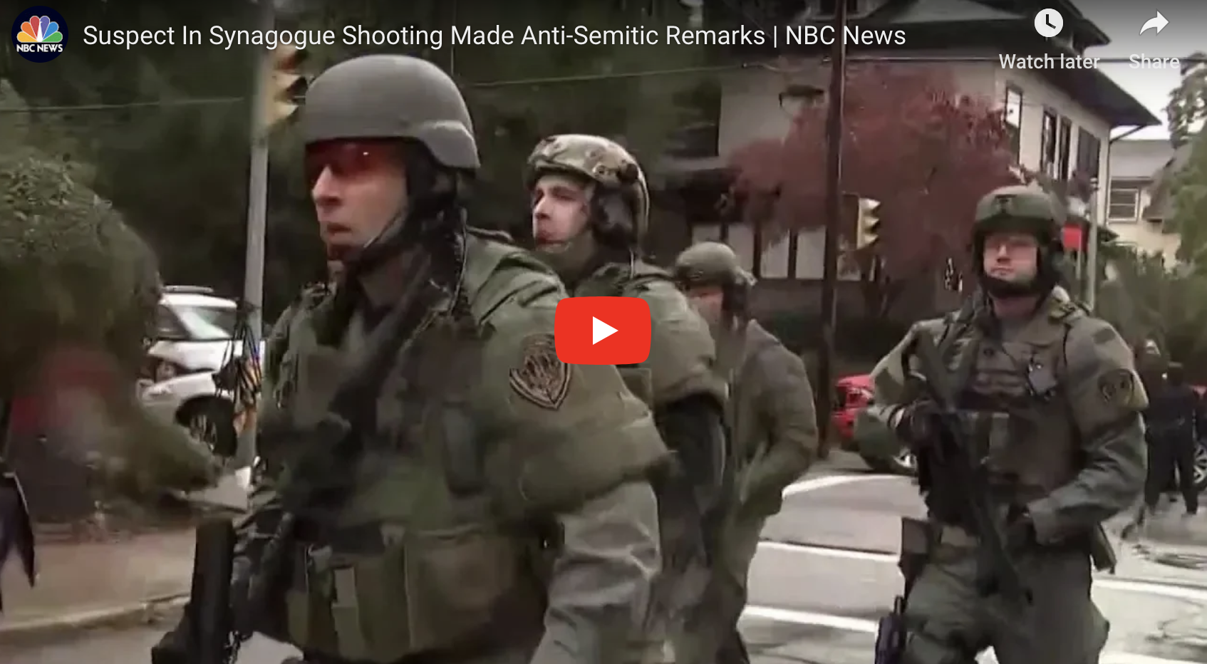 Eleven people were killed today in a shooting at a synagogue in Pittsburgh. Three officers were shot as well. The shooter was a 46-year-old anti-semite who actively posted messages on his Gab social media account about killing Jews. He also hated President Trump because he was associated with Jews.