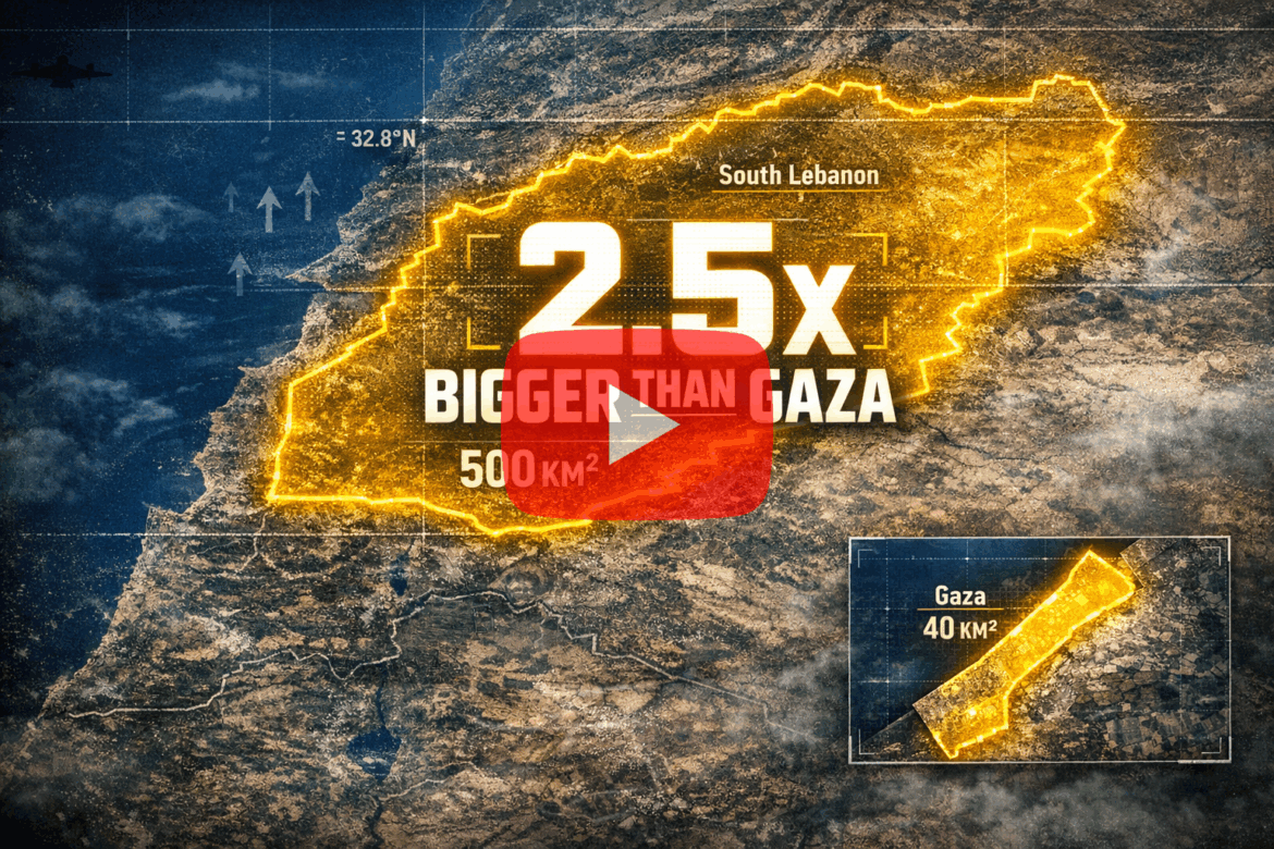 Lebanese sources now estimate that the area enclosed within the so-called “yellow line” in southern Lebanon spans roughly 500 square kilometers. That number, on its own, doesn’t fully register—until you anchor it against Gaza.