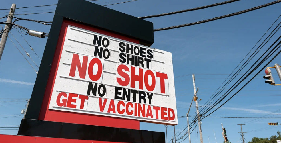 The most dystopian of these vaccine pass systems was in Lithuania, where the unvaccinated were banned from nearly everything; the few shops where they could purchase essentials had to post red signs indicating unvaccinated persons could be present.